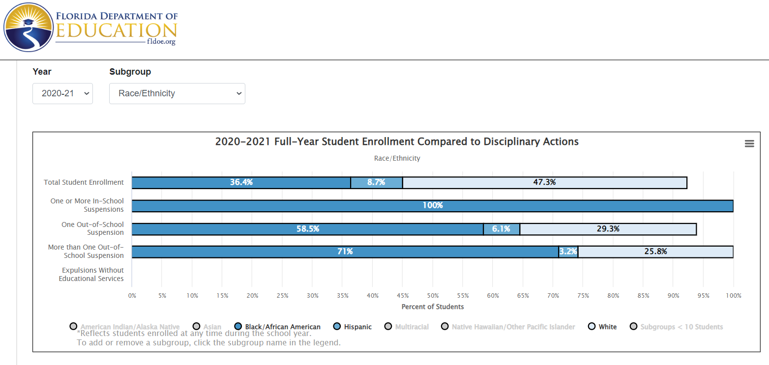 For more information, you can also search for your school report from the Florida Department of Education’s data portal. There is a lot more information than the screenshots below. Start here and it will ask you for the school or district you want to see.